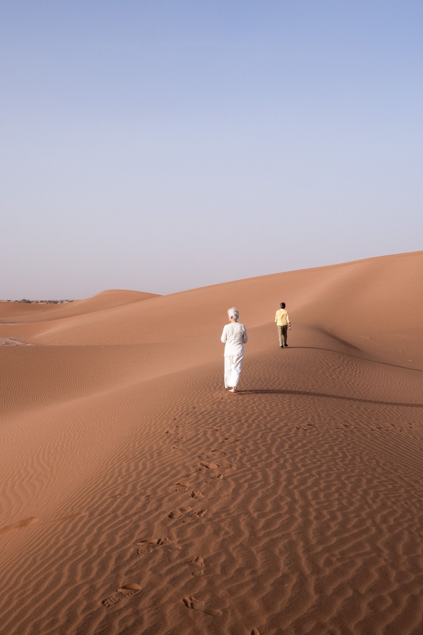 L’incontro con le dune più alte mi commuove: facendo un giro su me stessa il mio sguardo incontra solamente sabbia, vicino e lontano.